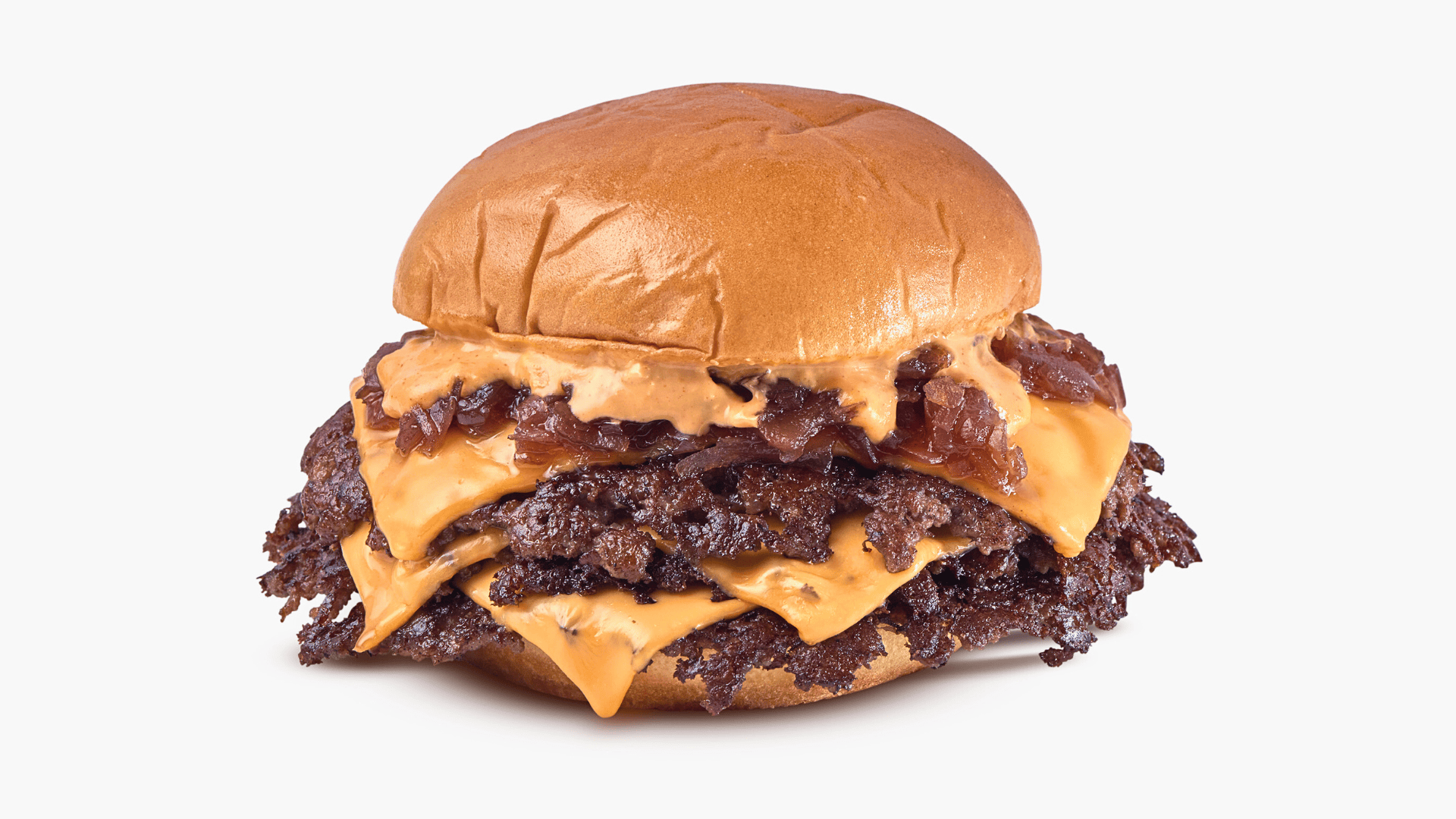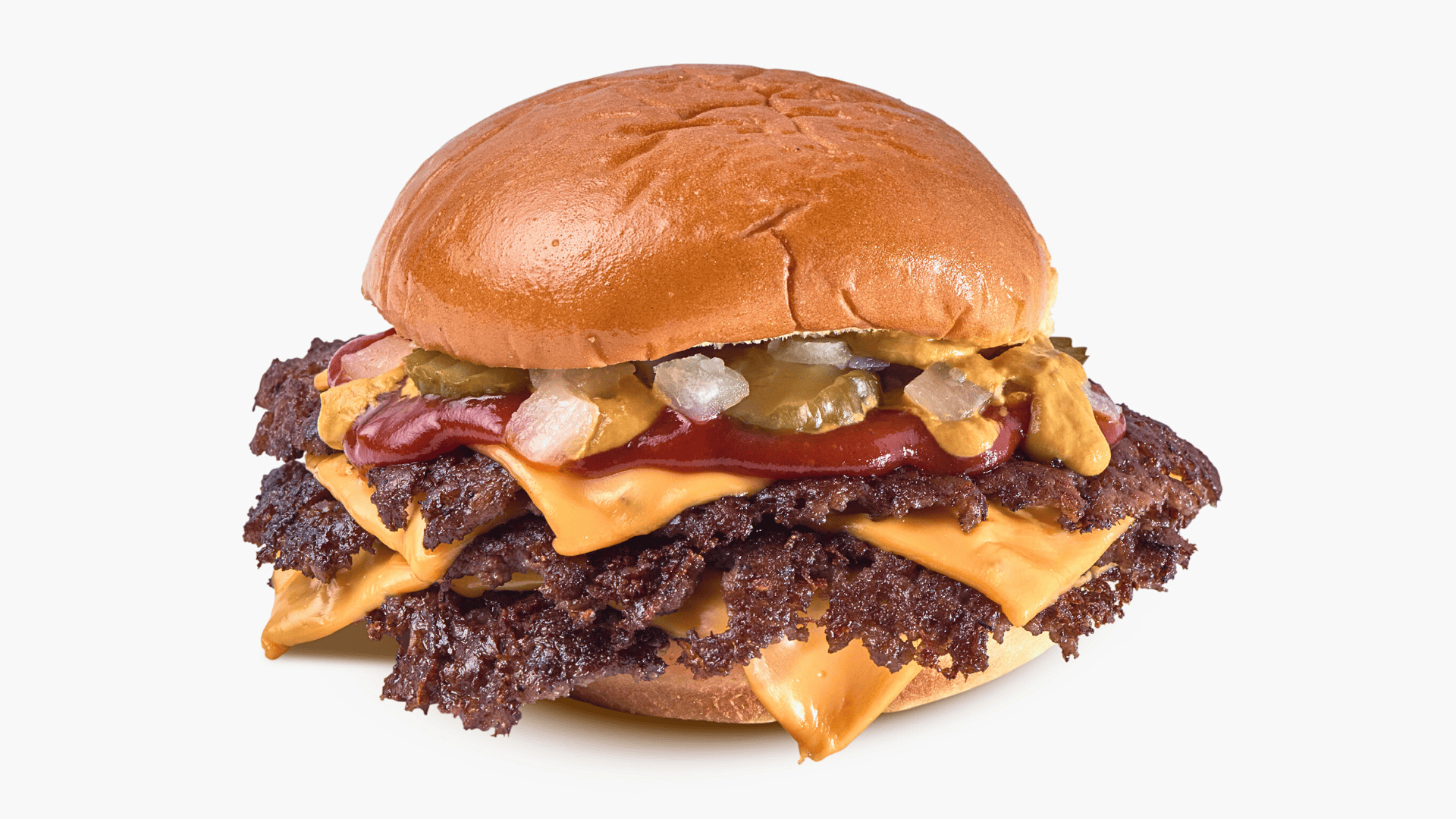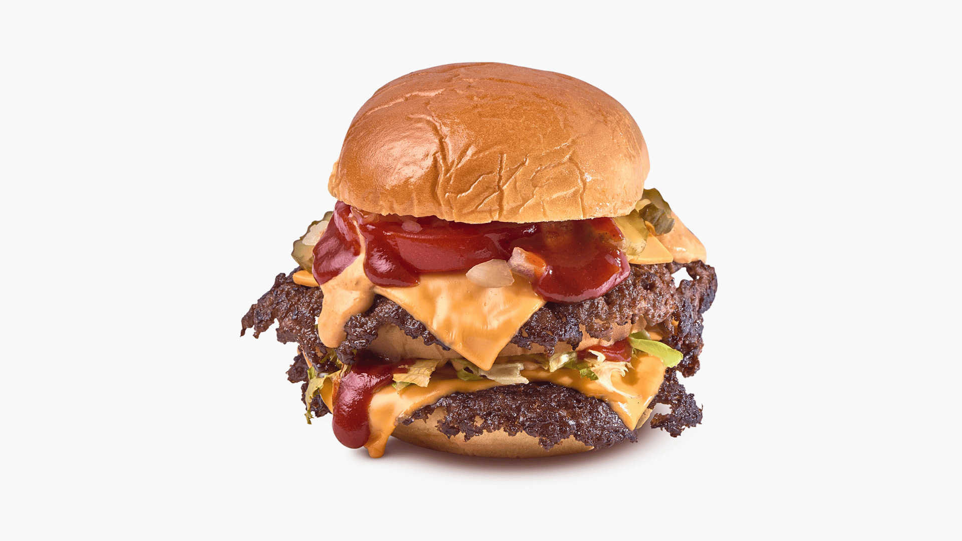 Saftiges Patty aus 100% qualitätsvollem Rindfleisch unter melty Cheddar, eingelegten Gurken, knackigen rohe Zwiebelwürfel, Ketchup & Senf - simply YUM! Wähle zwischen einem, zwei oder drei Patties.