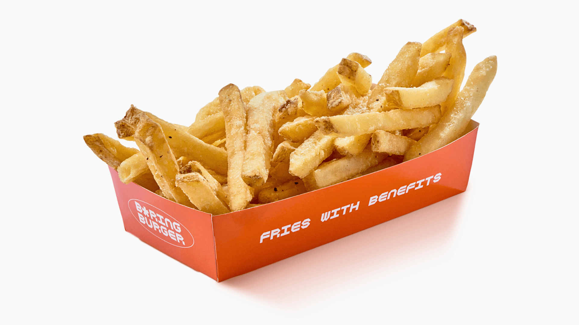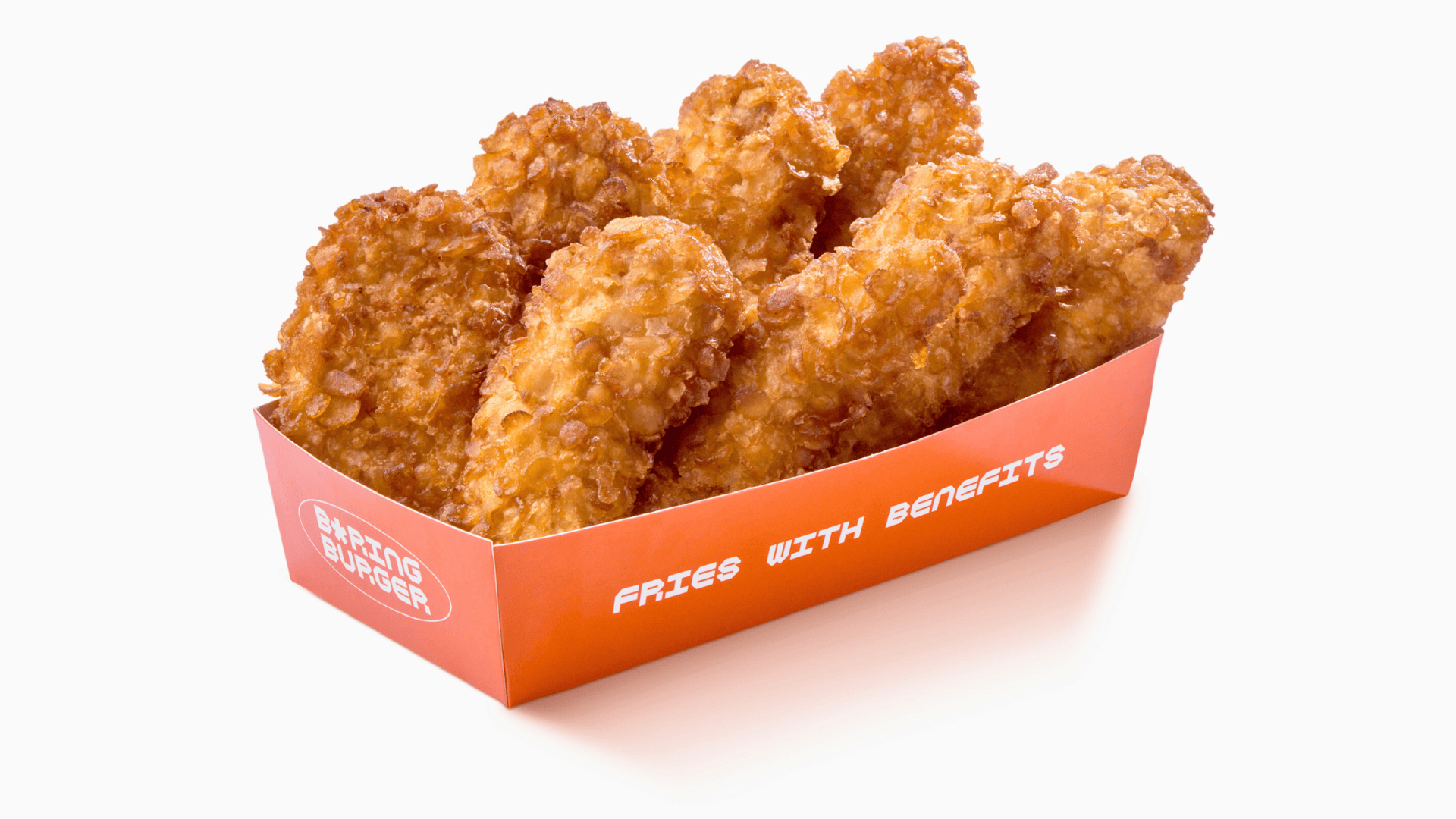 Finest smashed Beyond-Meat-Patty, karamellisierte Zwiebeln und unsere Borings Best Hause Sauce - all vegan, period! Wähle zwischen einem, zwei oder drei Patties.